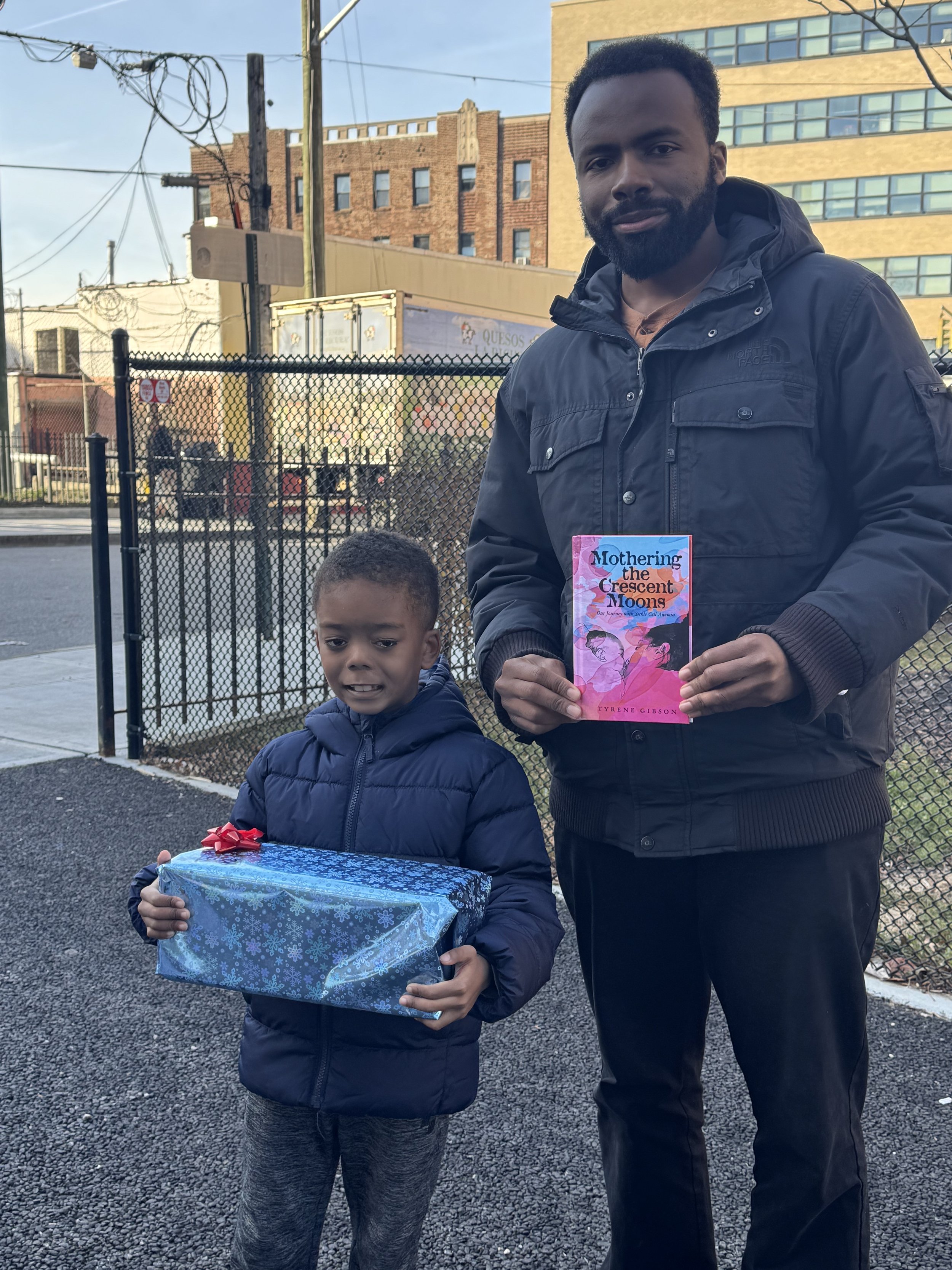 In addition to the gift, we wanted to provide a copy of “Mothering the Crescent Moons” by Tyrene Gibson. This book chronicles the journey of Tyrene and her daughter, Aya, who had sickle cell (and is now cured!).